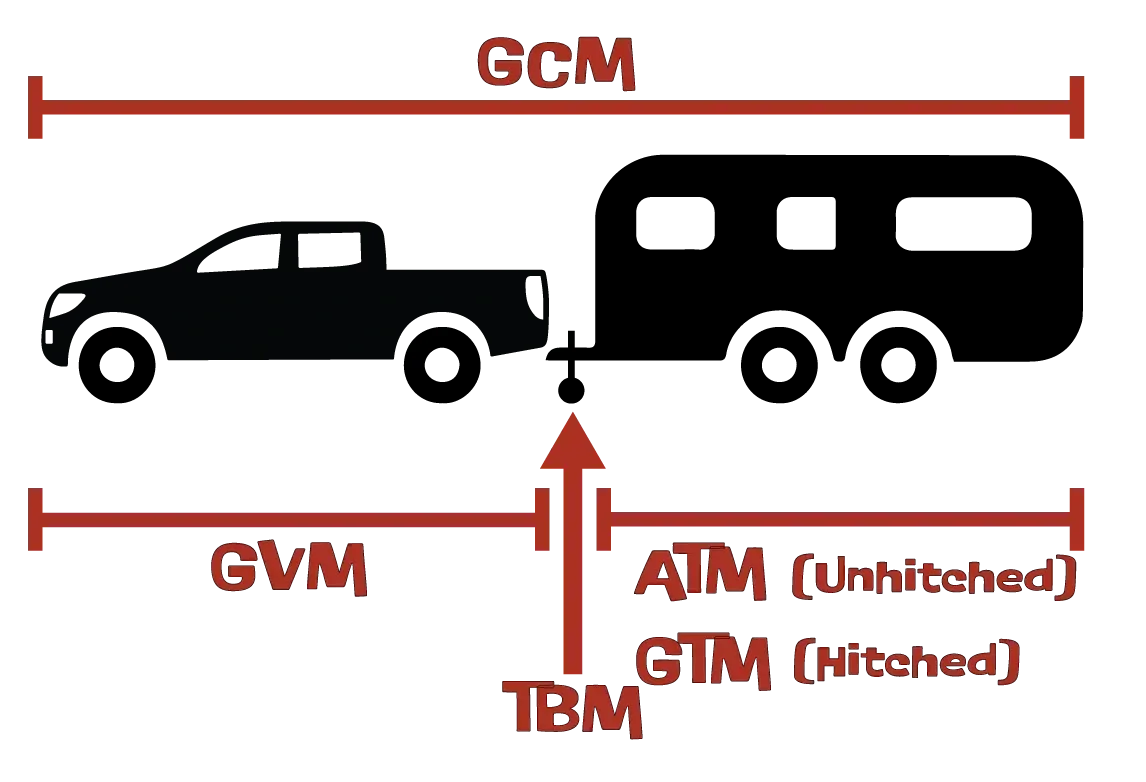 The weight transferred to the ground through the wheels of a fully laden vehicle. Including the trailer attached if towing to ensure weight transferred through the tow hitch is included in calculations.